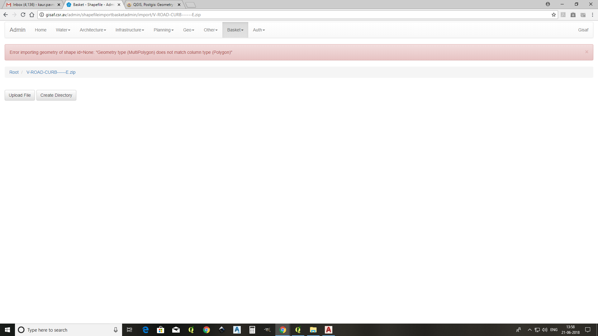 there is an issue importing the V-ROAD-CURB------E shapefile into GISAF. I am attaching a screenshot of the error message. I am following the same procedure as i did for other shapefiles such as V-ROAD-UPVD------E though i didnt face this issue.